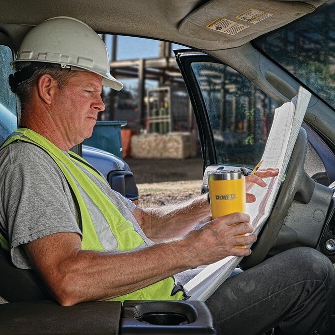 Ideal for work or on-the-go, DEWALT Tumblers are designed to keep you hydrated wherever the job or life takes you. Perfect for the construction site, backyard barbeques, campgrounds, sporting events, and more! The durable quality of 18/8 Stainless Steel body is built tough to withstand your work day demands. Dual-wall vacuum insulation means it will hold its internal temperature longer, prevent condensation and heat transfer to the outside, so you can drink comfortably. The clear, BPA free lid is drink straw friendly and features a flip-top closure that snaps into place ensuring that your drink time is spill-free. Available in standard 20 & 30 Ounce sizes that fit most cup holders for safe and convenient travel. Hand wash and dry only. Keep your drinks hot or cold longer with DEWALT Industrial Drinkware.