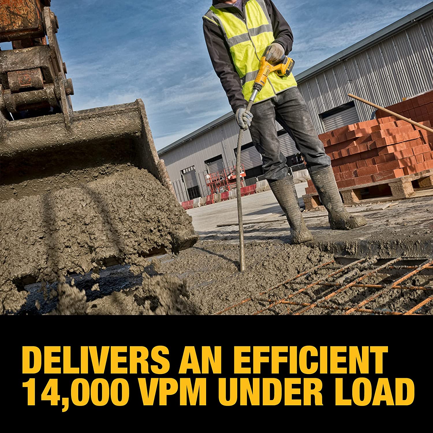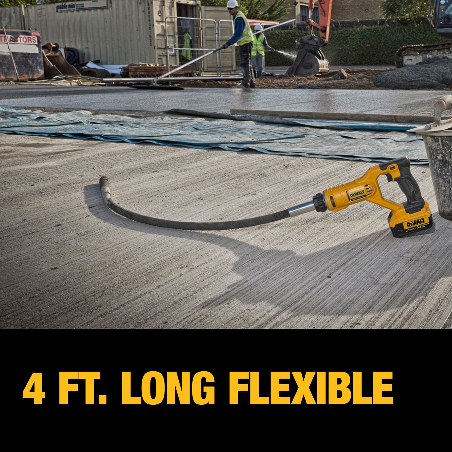 The 20V MAX* Pencil Vibrator Kit comes with 4 Ah battery, giving you the power and runtime you need to consolidate concrete. The 1 – 1/8″ diameter vibrator and 14,000 VPM (under load) deliver maximum consolidation power and efficiency. The 4 foot long flexible shaft provides ease of use and long reach.