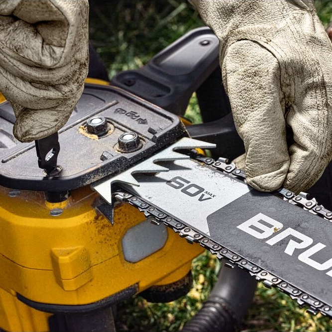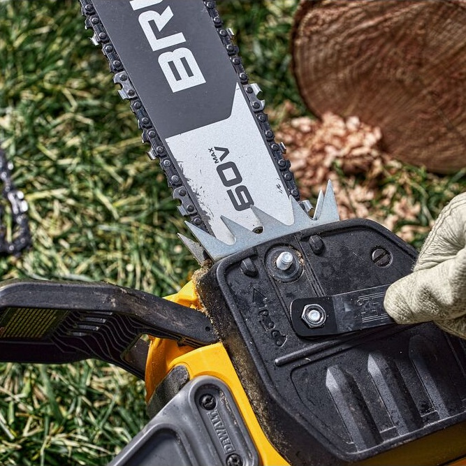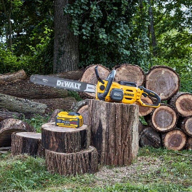 Made for professional use, the 60V MAX* 20 in. 5.0Ah Brushless Cordless Chainsaw features peak horsepower of 4 HP using a DCB615 battery. Designed for consistent high-level performance, this Chainsaw features tooled chain tensioning for reliable bar retention. Its brushless motor delivers expert-grade efficiency with auto-oiling for continuous lubrication. The unit’s bar and chain were engineered for low kick back for a range of outdoor cutting applications, and its chain brake offers added kick back protection.