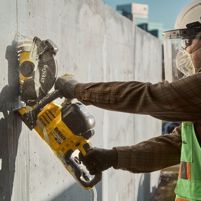 Perform fast single pass cuts and scores in concrete, pavestones, steel, and rebar with this 60V MAX* Brushless Cordless 9 in. Cut-Off Saw. The cut-off saw delivers up to 6,600 no-load rpm with its high-performance brushless motor while the 9 in. wheel allows for cuts up to 3-1/4 in. deep. Get power and runtime feedback during demanding applications with the integrated heavy-load indicator light and rotate the saw as you work using the 5-position guard to choose the best cutting angle for visibility and mobility in confined spaces. For protection in harsh jobsite conditions, the onboard battery box can be latched, sealed, and is large enough to accommodate the DCB615 battery (battery sold separately). This versatile saw features built-in WIRELESS TOOL CONTROL™ functionality which is designed to enhance runtime and worksite productivity by allowing it to be linked to other compatible tools and operated cord-free. This power tool is OSHA Table 1 Compliant for dust management with the dual-sided water feed system and it is Tag Ready™ so users and companies can simply attach a DEWALT Tag™ and track its location via the DEWALT Tool Connect™ app. Tag is sold separately.