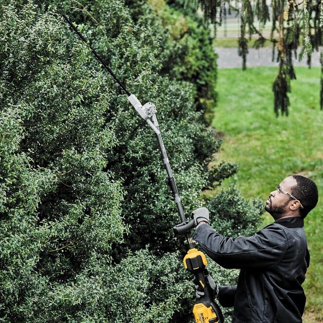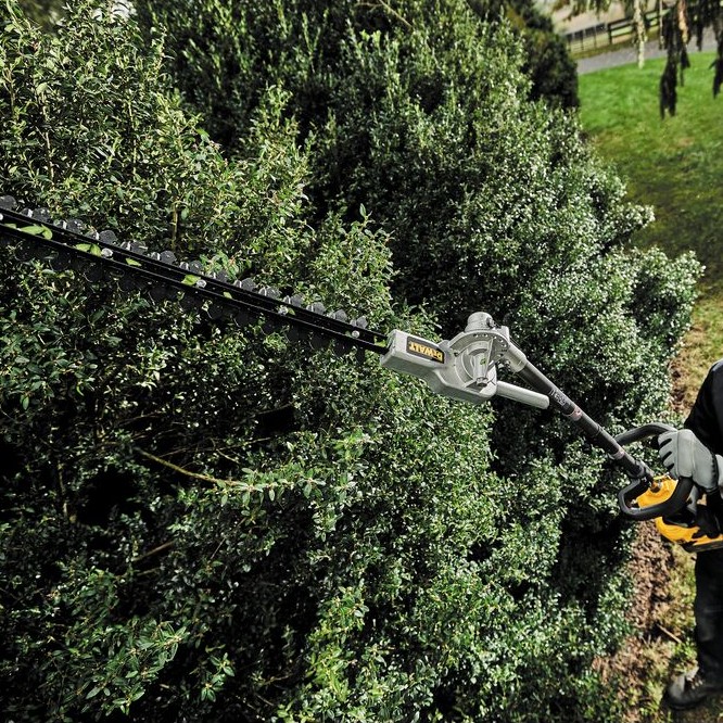 Get the versatility and trimming power you need to get the job done with the DEWALT Universal Articulating Hedge Trimmer Attachment. This adaptable add-on will conveniently change your ATTACHMENT CAPABLE power head into a hedge trimmer. Tackle a variety of tasks with a durable 22 in. dual-action, hardened steel blade that has a flexible 135° cut range. Additional attachments are available to convert to other outdoor tools.