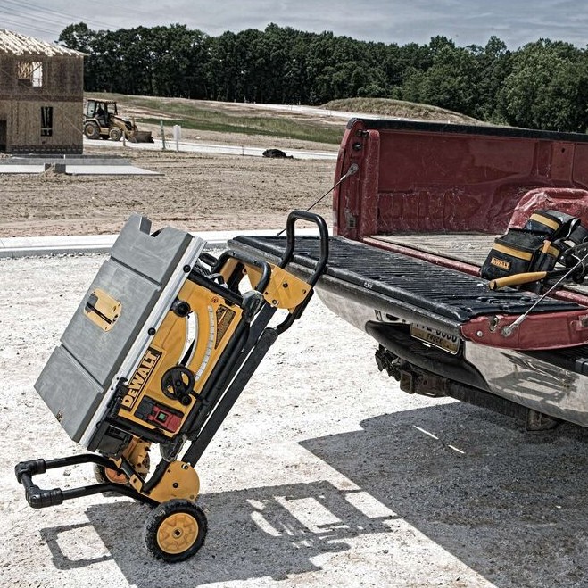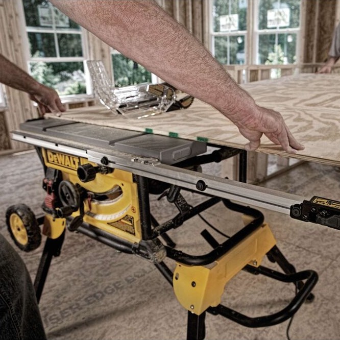 Built for power, capacity, and portability, the DeWalt 10″ Jobsite Table Saw is a jobsite staple. Its 15 Amp motor delivers the muscle to rip through hardwoods, while the 32-1/2″ rip capacity handles wide shelving, trim, and full sheets with ease. The Rack & Pinion Telescoping Fence System ensures quick, accurate adjustments, and a patented material support enables safe narrow rip cuts. The included rolling stand offers excellent stability with quick setup and breakdown, making transport effortless. Onboard storage, a flip-over rip fence, and tool-free guarding adjustments complete this highly efficient and versatile jobsite saw.