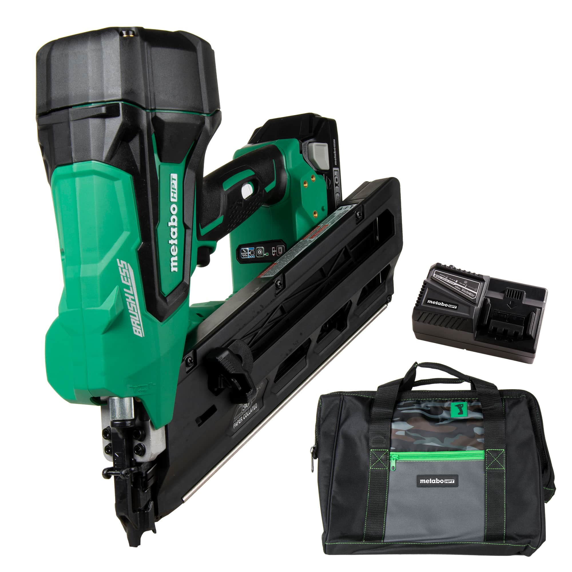 • Accepts 30° clipped & offset round head, paper collated nails from 2″ – 3-1/2″