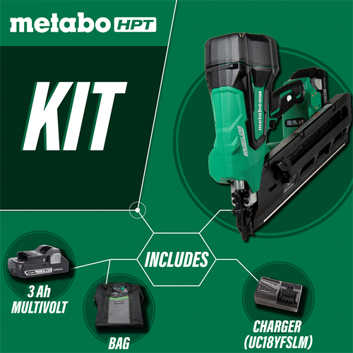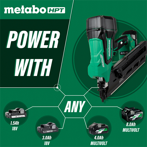 The NR1890DC 18V Cordless Paper Strip Framing Nailer completely raises the bar for cordless framing nailers. It is designed so you no longer need the dirty hoses, loud compressors or expensive gas cartridges. It’s equipped with Metabo HPT’s unique Air Spring Drive System that delivers similar performance as a pneumatic nailer, but offers total cordless freedom. It uses sealed compressed air to drive each nail, which results in zero ramp up time, up to 2 nails driven per second, recoil that feels like a pneumatic nailer and best of all, there is no refilling of the air tank required. This cordless nailer is ideal for all construction framing applications but is particularly useful for punch-out work on a jobsite for quick in-and-out operation with minimal hassle and professional results.