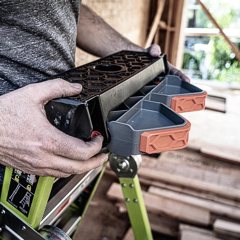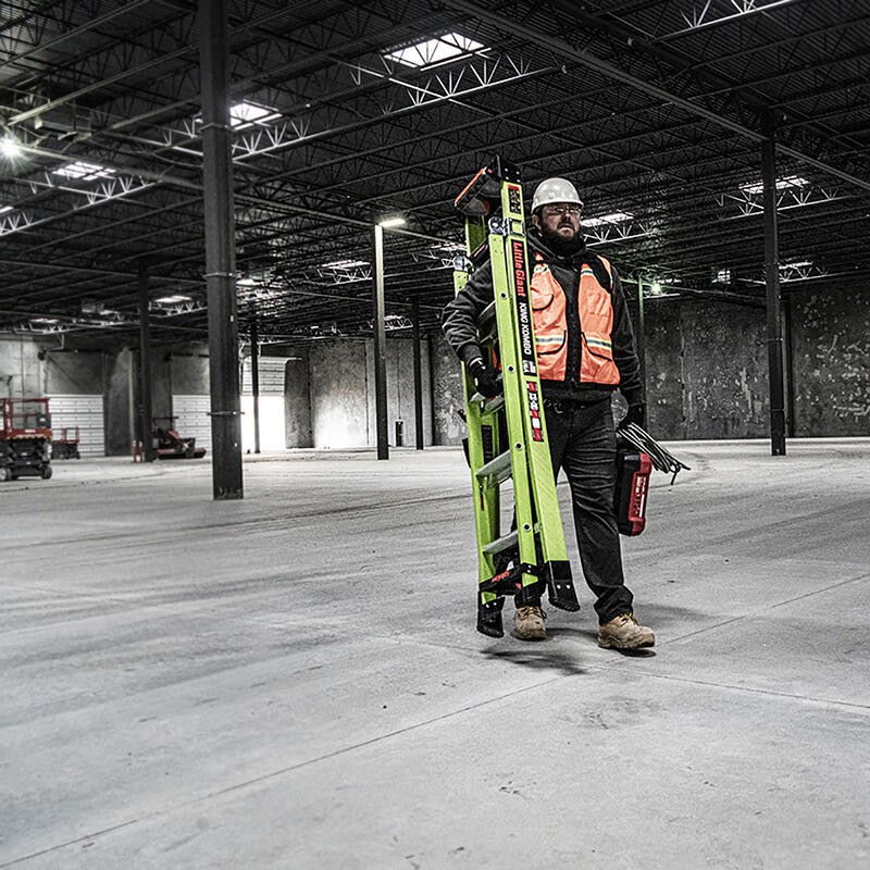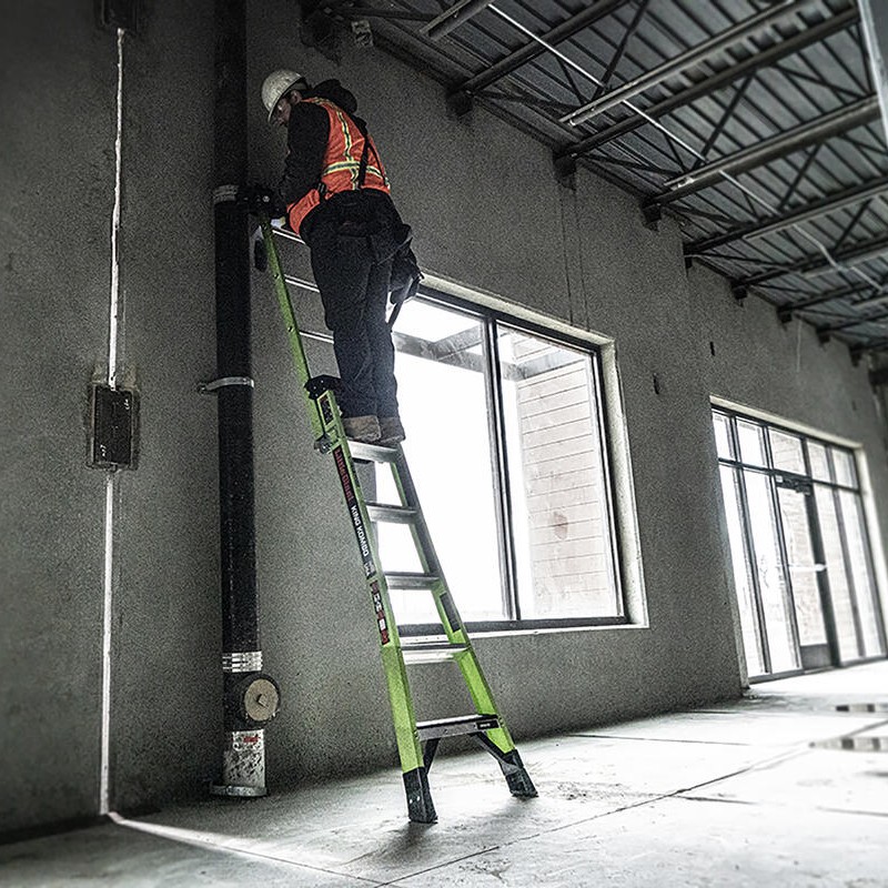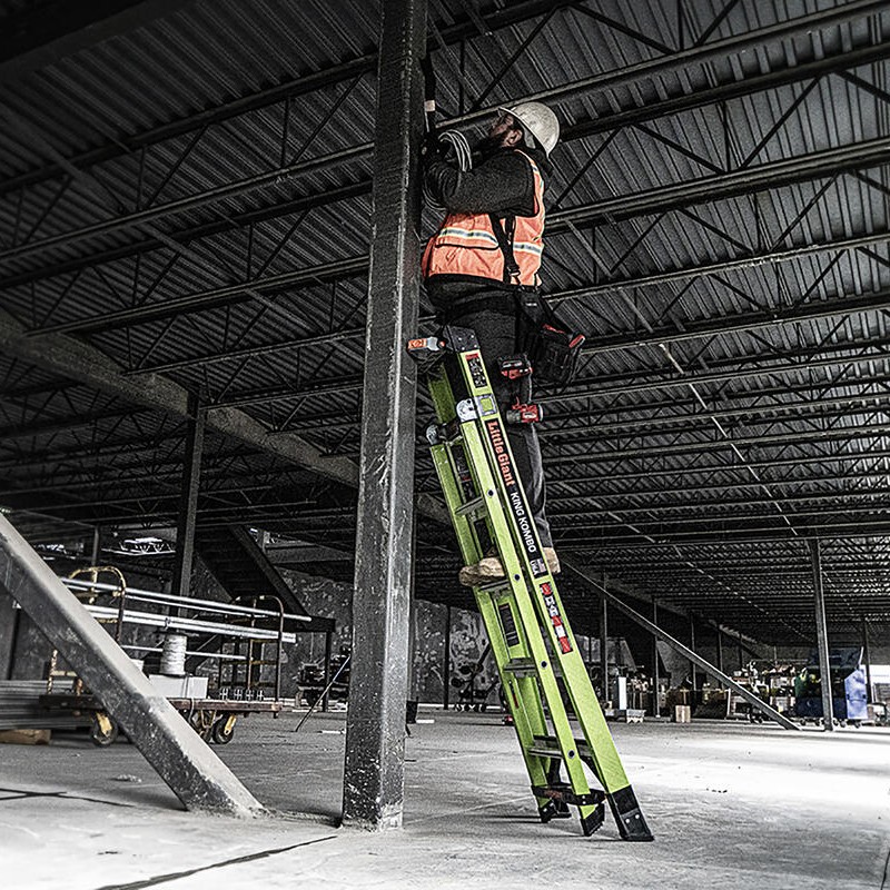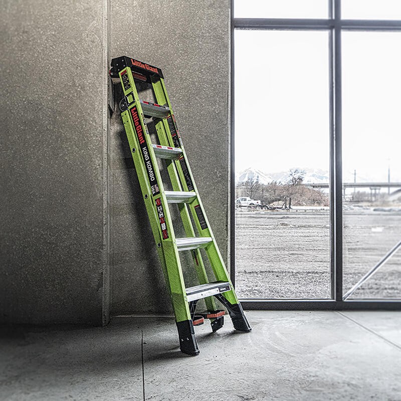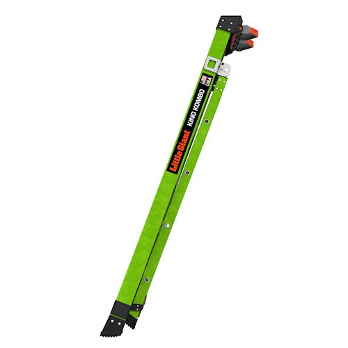 It’s the pro tool that helps you get stuff done faster than ever. The pinnacle of ladder technology, the King Kombo™ from Little Giant Ladder Systems® is tough as nails and versatile enough for any tradesman. Recognized for its superior safety and innovation, the King Kombo is the most awarded ladder ever, having received awards at the 2019 Pro Tool Innovation Awards, 2019 OH&S New Product of the Year Awards, SAFE Awards from the National Association of Homebuilders and more. This 3-in-1 combination ladder easily converts from stepladder to extension and leaning configurations, giving you the perfect tool for any job. With its innovative one-handed, Grip-N-Go hinge, the King Kombo can transition from position to position in one fluid motion. Meeting or exceeding all OSHA and ANSI standards, the aluminum King Kombo is rated Type IA to hold 300 lbs. and the fiberglass King Kombo is rated Type IAA ladder to hold 375 lbs.