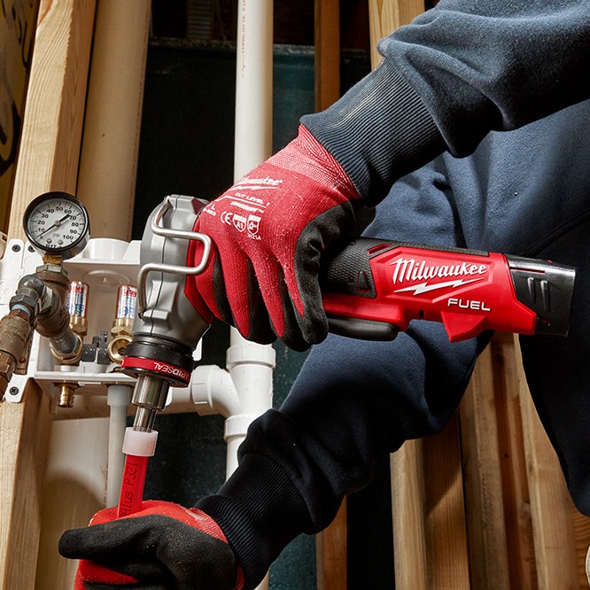 This M12 FUEL™ ProPEX® Expander unlocks a breakthrough in productivity for plumbing installers, delivering the fastest 3/8”-1” expansions. Featuring an auto-rotating head, the expander provides you with uniform expansions for the most consistent installations. In combination with the ProPEX® Expander Heads with RAPID SEAL™, installers will experience up to 65% faster sealing of connections as temperatures decrease, reducing the time before pressure testing. An extended dual actuating trigger and a compact right-angle design provide you with easy access in tight locations. All-metal gears and an integrated metal frame deliver maximum durability on the job site. The POWERSTATE™ Brushless Motor offers the fastest expansions yet runs cooler with no wearable components. The REDLITHIUM™ 2.0 Compact Battery Pack provides up to 20% more power, 2X more recharges than standard lithium-ion batteries, and best-in-class performance in extreme jobsite conditions. REDLINK PLUS™ intelligence ensures optimized performance and protection from overload, overheating, and over-discharge. The onboard fuel gauge helps you monitor the charge more accurately, so there’s less downtime on the job. The MILWAUKEE® expander is designed for UPONOR® ProPEX® connections to deliver fast potable water installations from expansion to seal.