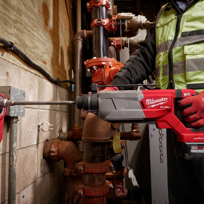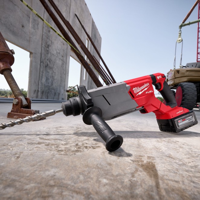 Our M18 FUEL™ 1-1/4” SDS Plus D-Handle Rotary Hammer w/ ONE-KEY™ delivers on the drill speeds normally associated with SDS Max rotary hammers. The hammer drills Faster ¾” Holes and is Lighter Versus 1-9/16″ SDS Max rotary hammers, includes AUTOSTOP™ Control for Enhanced Safety, and can drill up to (25) ¾” x 4” Holes per Charge when paired with our M18™ REDLITHIUM™ HIGH OUTPUT™ XC6.0 Battery. Our in-line D-Handle design allows access in tight spaces and provides superior balance and ergonomics for downward drilling. Our POWERSTATE™ Brushless Motor delivers 3.65 ft-lbs of impact energy, 810 RPM, and 4,650 BPM, providing the speed and power for the most demanding applications. This hammer provides maximum control and enhanced safety with the AUTOSTOP™ Kickback Control, preventing over-rotation if the tool binds up while drilling in concrete with rebar or hard aggregate. This tool is compatible with our M18 FUEL™ HAMMERVAC™ 1-1/4” Dedicated Dust Extractor providing on-board OSHA Table One compliance. Our AVS Anti-Vibration System reduces vibration for maximum comfort. The cordless rotary hammer is compatible with ONE-KEY™ to track the tool’s location and manage inventory. The REDLINK PLUS™ intelligence tool technology ensures maximum rotary hammer performance and protects it from overload, overheating, and over-discharge. Our M18™ REDLITHIUM™ HIGH OUTPUT™ XC6.0 Battery delivers 50% more power while running 50% cooler than our M18™ REDLITHIUM™ XC batteries (not included).