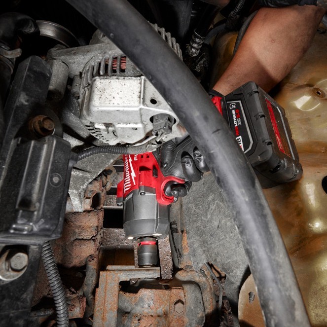 Our M18 FUEL™ ½” HTIW w/ Friction Ring & Grease Gun Combo Kit includes the most power-dense impact wrench in its class, provides greater access in tight spaces, and maximizes productivity through faster removal speeds. The POWERSTATE™ Brushless Motor delivers up to 1,100 ft-lbs of Fastening Torque and 1,500 ft-lbs of Nut-Busting Torque when paired with our M18™ REDLITHIUM™ XC5.0 Battery, while the compact size at 7.6″ in length gives users greater access in tight spaces. The M18 FUEL™ ½” High Torque Impact Wrench w/ Friction Ring maximizes productivity on the jobsite and in the shop by removing stubborn bolts and fasteners faster than cordless competitors. Our patented battery isolation system provides a secure battery connection and controls vibration transmitted to the pack. Tri-LEDs surround the anvil to deliver brighter light with fewer shadows. 4-Mode DRIVE CONTROL™ offers greater precision with a range of pre-set RPM and IPM levels, selectable from a single button on the tool. By selecting Mode 4, AUTO SHUT-OFF™ control applies no more than 50 ft-lbs of torque for hand-tight fastening applications to prevent overtightening. Mode 4 also features Bolt Removal Control that delivers our users full torque output, then decreases RPMs once the bolt is loosened to prevent fastener drops. The ½” Friction Ring design allows for quick & tool-free socket changes. The M18™ REDLITHIUM™ XC5.0 Resistant Battery included provides increased protection against oils, greases, & solvents.