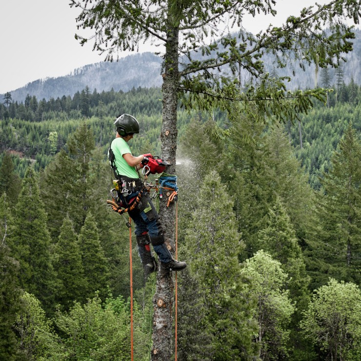 • Climbing scabbard covers bucking spikes, locks on to saw, and has tie off points for aerial applications