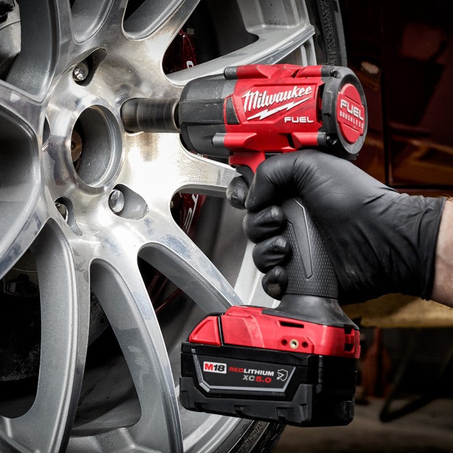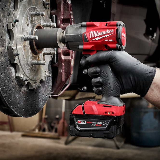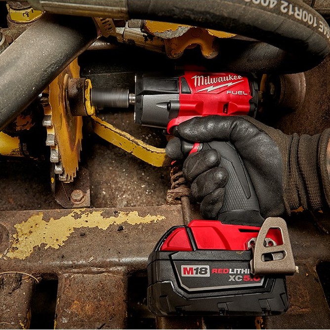 The M18 FUEL™ 3/8″ Mid-Torque Impact Wrench w/ Friction Ring delivers the best power to weight ratio, most access in tight spaces, and faster removal speed. It provides 600 ft-lbs of nut-busting torque and only weighs 5.0 lbs, making it extremely versatile, capable of performing a wide variety of applications. Its POWERSTATE™ Brushless Motor generates the power needed to quickly perform many tasks, such as removing large bolts or lug nuts. This MILWAUKEE® 3/8″ Impact Wrench is the most compact in its class, giving you access to stubborn fasteners in spaces where larger impact wrenches can’t fit without needing to disassemble components to reach bolts. Tri-LEDs surround the anvil to deliver brighter light with fewer shadows. 4-Mode DRIVE CONTROL™ offers greater precision with a range of pre-set RPM and IPM levels, selectable from a single button on the tool. By selecting Mode 4, AUTO SHUT-OFF™ control applies no more than 35 ft-lbs of torque for hand-tight fastening applications to prevent overtightening. Mode 4 also features Bolt Removal Control that delivers you full torque output, then decreases RPMs once the bolt is loosened to prevent fastener drops. REDLINK PLUS™ Intelligence ensures maximum performance, protecting the tool against overloads, over-heating, and over-discharge. The M18™ REDLITHIUM™ battery pack (not included) fits M18™ tools, delivering more work per charge and more work over the life of the pack.
