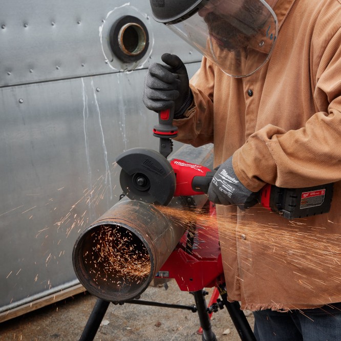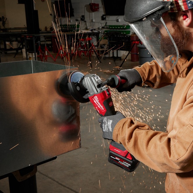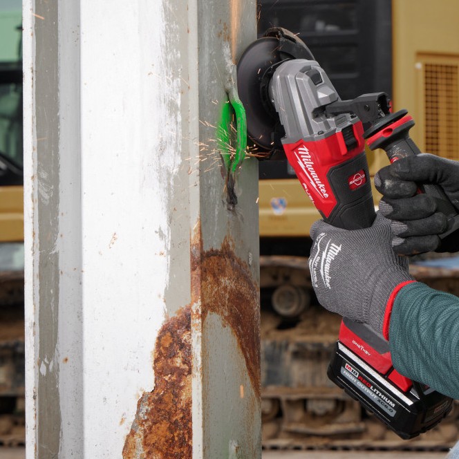 Cut, grind, and prep metal with MILWAUKEE 2986-20 M18 FUEL Dual-Trigger Braking Grinder delivering 11A corded power, RAPIDSTOP braking, and AUTOSTOP kickback control for safer operation.