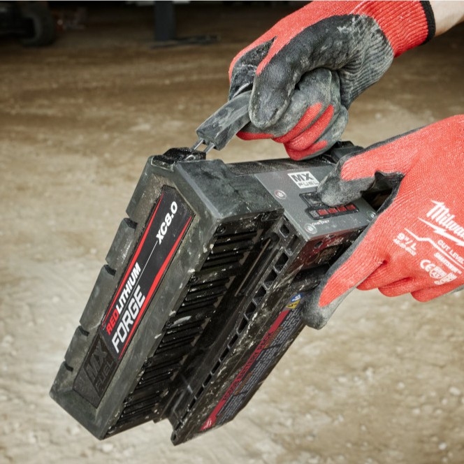 Our MX FUEL™ REDLITHIUM™ FORGE™ XC8.0 battery pack delivers up to 33% more runtime in a lighter weight design, has COOL-CYCLE™ capability for high-speed cooling, and the longest life versus REDLITHIUM™ batteries. REDLITHIUM™ FORGE™ is Milwaukee’s most powerful, fastest charging, and longest-life battery. With 33% more runtime and a lighter weight design versus MX FUEL™ REDLITHIUM™ XC406 (XC6.0), the battery allows you to run your equipment longer without sacrificing your ergonomic experience. When paired with the MX FUEL™ Super Charger this battery charges in just 45 minutes to 100%, getting you back to work faster than ever before. The MX FUEL™ REDLITHIUM™ FORGE™ XC8.0 is COOL-CYCLE™ capable. COOL-CYCLE™ Active Cooling System provides high-speed cooling for less downtime. The active cooling feature works with MX FUEL™ batteries that have COOL-CYCLE™ capability. This battery pack delivers the longest life for the most recharges and the best performance over the life of the pack. The XC8.0 has the best protection from jobsite, weather, and environmental conditions. With ONE-KEY™, track, manage and secure equipment from your mobile device or computer using the industry’s largest Bluetooth® community tracking network. If ever lost or stolen, prevent tampering with remote lockout capability. REDLINK™ Intelligence allows the battery to communicate with MX FUEL™ equipment in application to optimize performance. This battery is fully compatible with all MX FUEL™ equipment and chargers.