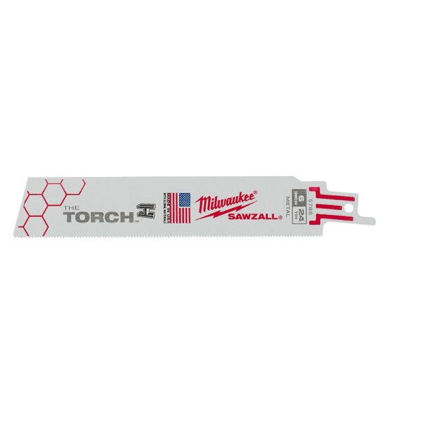 The Torch™ metal-cutting blades with the Double Duty Upgrade™ feature a tooth form optimized for the longest life and maximum durability. Tough Neck™ is engineered to protect against tang breakage and delivers the strongest SAWZALL® blade tang on the market. Grid Iron™ features a stamped honeycomb pattern throughout the body of the blade that greatly increases the rigidity of the blade, making it the stiffest metal cutting SAWZALL® blade on the market. These blades are ideal for making tough, straight cuts. For 1/16″ to 3/16″ metal.